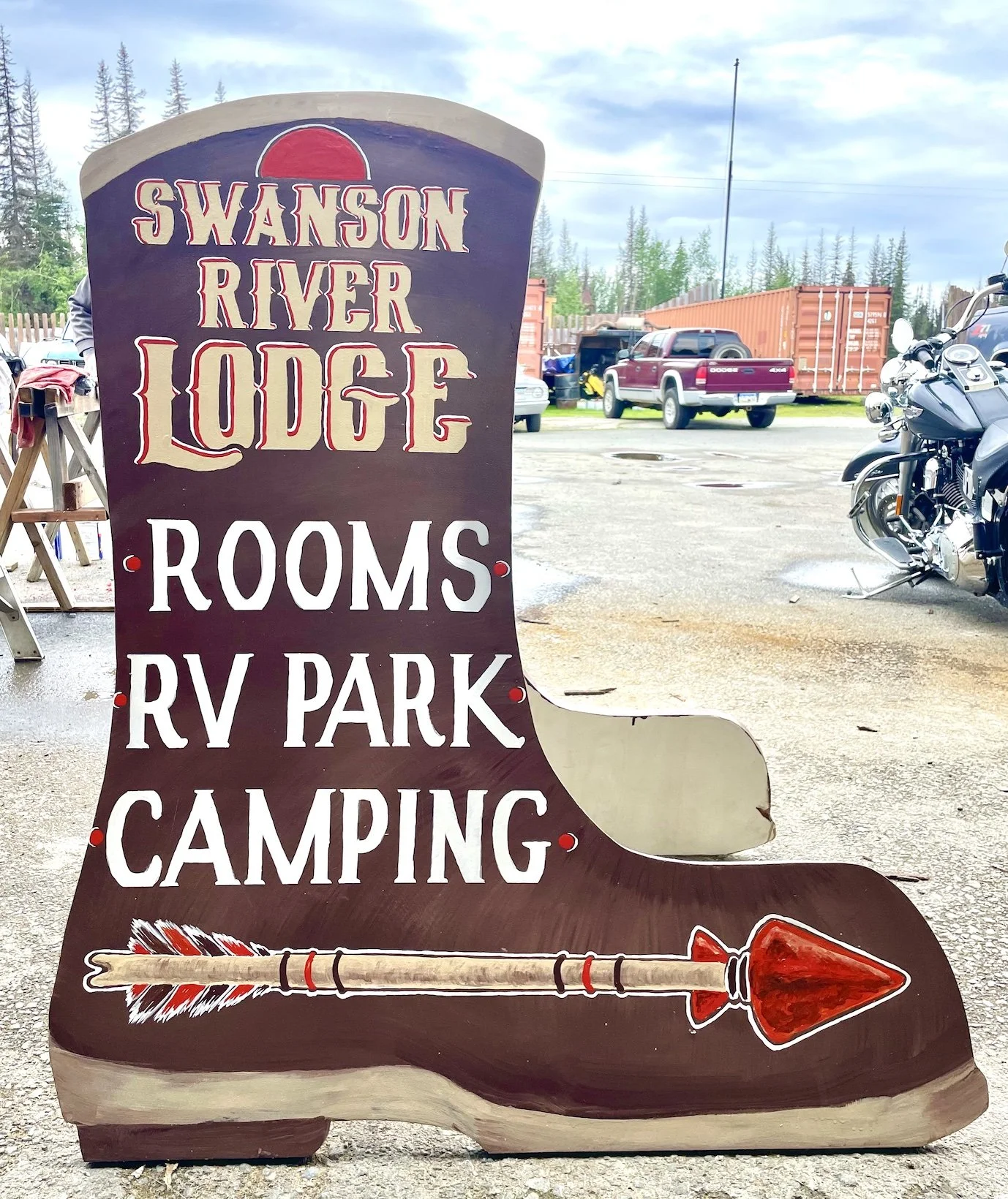 SWANSON RIVER LODGE SIGN, STERLING, ALASKA